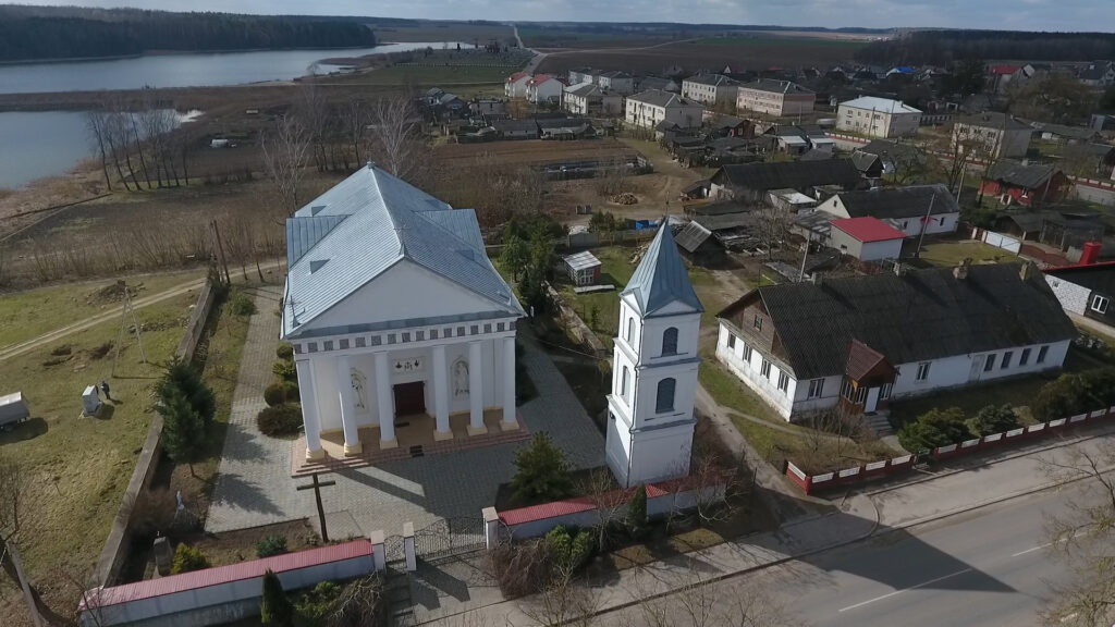 W 1826 roku, zatwierdzono sporządzony w Petersburgu neoklasycystyczny projekt nowego kościoła, który miał mieścić się na wzgórzu pośrodku wsi, gdzie stała stara kaplica. Budowa kościoła trwała długo. W 1838 roku, zmarł Aleksander Świetczyn, ukochana żona pochowała go w specjalnie wzniesionej kaplicy na cmentarzu. W czerwcu 1840 roku, kościół pod wezwaniem Najświętszej Maryi Panny został poświęcony. Świątynia została zbudowana w kontekście ówczesnej mody architektonicznej – z trójkątnym frontonem, gankiem z kolumnami porządku doryckiego, półkolistymi sklepieniami, gipsowymi rzeźbami świętych. Przy kościele znajdowały się dwie kaplice z dzwonami, na jednej z nich umieszczono zegar.