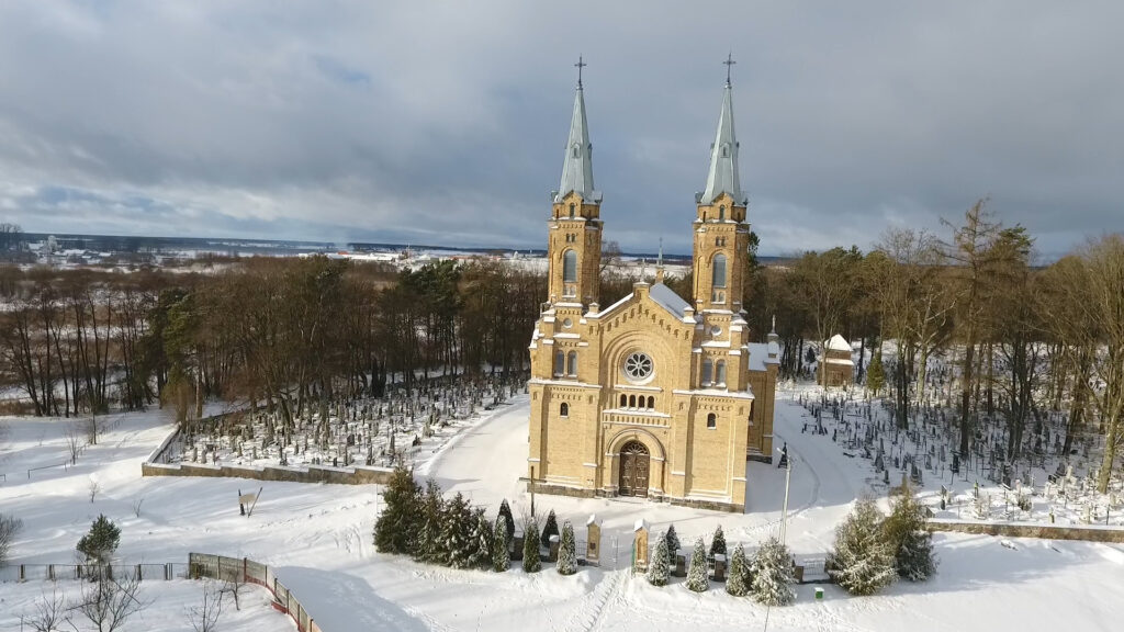 W 1902 roku, z inicjatywy proboszcza ks. Kazimierza Stalewskiego, wierni podjęli decyzję o budowie murowanej świątyni. Prace ruszyły w 1903 roku, a już pięć lat później, nowy kościół został konsekrowany. Zbudowany z żółtej cegły, urzeka eklektycznym stylem, łączącym elementy neoromanizmu, neogotyku i secesji. Dwuwieżowa bazylika, z trzema nawami i charakterystyczną absydą, wkomponowała się harmonijnie w otaczający krajobraz.