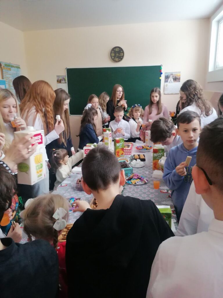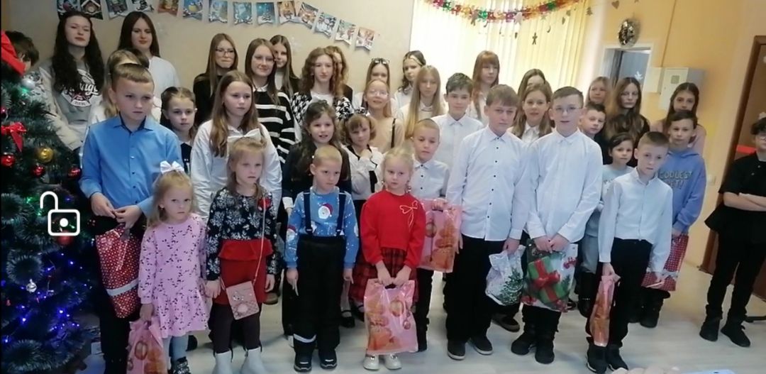 Po części artystycznej przyszedł czas na niespodzianki. Każde dziecko otrzymało słodki upominek, który wywołał szerokie uśmiechy i dodał wydarzeniu jeszcze bardziej świątecznego charakteru. Wspólne rozmowy, zdjęcia i serdeczne uściski dopełniły atmosfery bliskości, która towarzyszyła całemu spotkaniu w Lidzie.