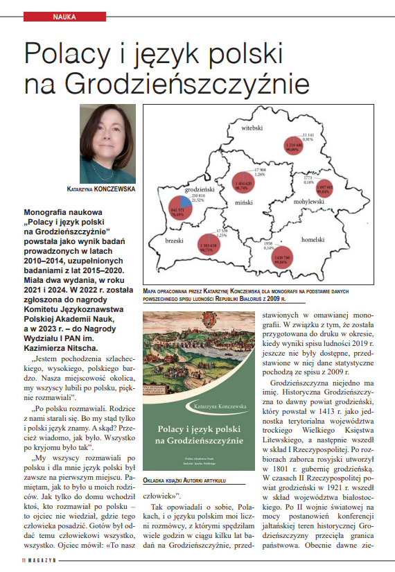 Jednym z najważniejszych tekstów numeru jest artykuł Katarzyny Konczewskiej poświęcony monografii naukowej „Polacy i język polski na Grodzieńszczyźnie”.